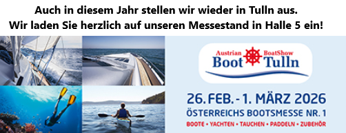 Wegen der Messe BOOT Tulln bleiben unser Werksverkauf und das Büro am 24. und 26. 02. geschlossen. |